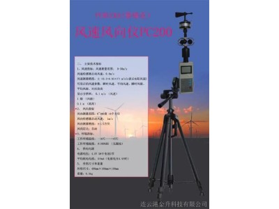 PC200风杯式风向风速仪是经过多年研究实验开发,广泛应用于农林、环境、海洋、科学考察、气象教学等领域测量大气的风参数的一款新型仪器。仪器测量部分采用了单片机技术,可以同时测量瞬时风速、瞬时风级、平均风速、平均风级、对应浪高等5个参数。该仪器所采用的液晶显示屏(LCD),并采取了许多降低功能的措施,大大减少仪器的功耗,它带有数据锁存功能,便于读数。本仪器体积小、重量轻、功能全、耗电省。在风向部分采用了自动定北装置,测量时无需人工对北,简化了测量操作。