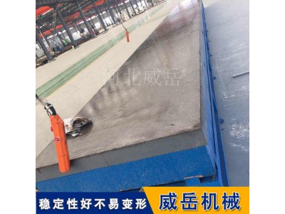 2.安装标准铸铁平台从锻造毛坯到成品使用要经由多次的吊装和运输,安装平台的周围都设计了吊装口,吊装安装平台时要按工序要求操纵,才可以调运。这样才可以保证安装平台不变形。安装平台在吊装过程中要考虑有可能泛起的一些意想不到的情况会发生,提前作好预备,安装平台的成品重量有的可以达到50,所以吊装是安装铸铁平台可以放心使用的一个不可忽视的环节。