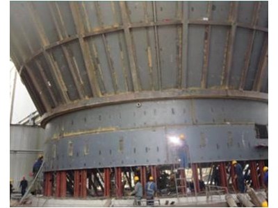 因费托反应器下段结构从开始整体提升至下降就位的过程需要持续10个工作日以上。提升过程中、刚性腿铰链安装、刚性腿大接头对口/焊接、行走机构安装就位、整体卸载时,费托反应器下段结构需要在空中较长时间停留。