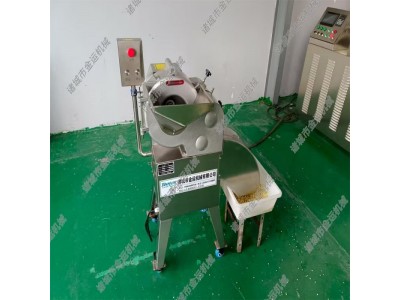 三维切丁机采用离心力驱动三级切割系统:切片刀先将物料切成片状,圆盘刀将片切成条,最后横切断刀完成立方体成型。切割尺寸可通过调整刀轴在3-25mm范围内调节
