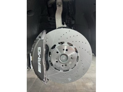 连续制动稳定性高:原厂刹车在多次急刹后容易出现热衰减,而升级后的 AMG 刹车系统,由于刹车盘散热效率更高,如前轮 400mm 直径的刹车盘采用了双层导风槽 + 打孔设计,抗热衰能力提升 50%,可实现 10 次急刹无性能衰减,保证了连续制动时的稳定性。