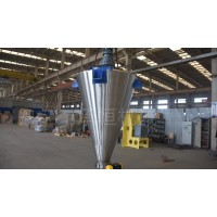 2.锥形混合机:属容器固定式混合机,该机主要由传动系统、两根倾斜螺杆、转臂、筒体、出料阀等组成。