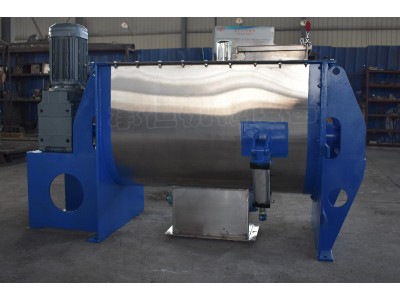 1.卧式螺带混合机由混合仓、搅拌器、驱动装置基本组成,U型管状仓内安装双层异向螺带盘绕的搅拌器轴,外螺旋带在动力的驱动下,其盘绕形式配合旋转方向把物料从U型仓两端推动, 而内螺旋带把物料从中间向两端推动,形成对流混合。