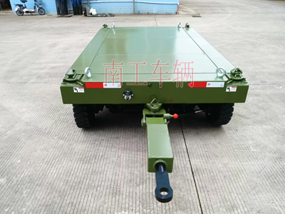 2.整车承载能力为3吨,板面宽度1.6米,长度为2.45米,高0.65米.钢板厚度5mm,加厚型钢焊接不易变形。牵引架折叠后总长度不大于2.7米。