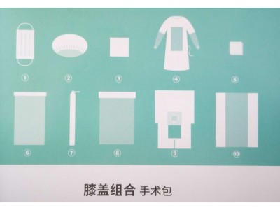 手术包配置:一次性使用医用口罩1个、一次性使用帽1个、器械盘套1条、擦手巾(40*40cm)4块、一次性使用手术衣(加强型)2件、纱布块10片、带纸板防护罩1个、一次性使用医用单(臀底单)1条、一次性使用手术洞巾(膝盖手术单)1条、一次性使用包布1条。
