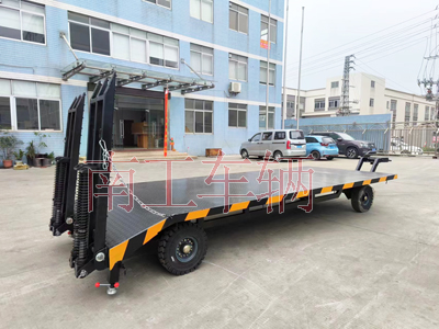 6吨带爬梯移动平板拖车南工车辆长期非标订制,平板拖车是一种用于工厂车间、物流园区、港口码头运输的牵引车辆。属于非标准车辆,载重量大、外形尺寸可根据客户的需求定制。底盘低,装卸货物方便,承载能力大,使用寿命长等优点。一般使用在机械、冶金、仓储运输等多个行业。短途中转、移库、机械、物流、下线等作业运输。适合于工业运输装卸等。本款拖车用于挖机,铲车,吊机等装卸运输,带爬梯方面上下平板。