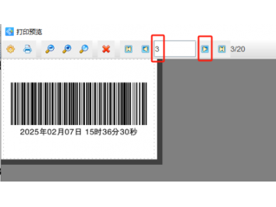 4. 设置完成之后,点击软件顶部的“打印”按钮,在打开的窗口中设置数据量(标签的总个数)、开始页码(从那一页开始打印)、结束页码(到哪一个结束打印),然后点击下面的“预览”按钮,翻页查看批量生成效果,预览无误就可以直接连接打印机打印出来了。