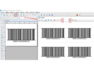 3. 设置完成之后,点击软件顶部的“打印预览”按钮,翻页查看批量生成的带外边框ITF14条码,预览无误就可以直接连接打印机打印出来了。