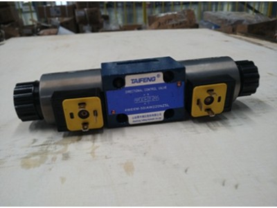 山东泰丰智能控制股份有限公司(原山东泰丰液压股份有限公司)生产的4we6型电磁换向阀是用电磁铁直接推动阀芯移位工作的小型方向控制阀,主要用于控制液体的通断和流动方向,也可以作为先导控制阀,以控制各种大通径的液压阀(电液换向阀或二通插装阀),实现对大功率液压阀的先导控制。其特点是:1.以直动式电磁铁操作方向滑阀作为标准类型;2.安装面符合DIN24340A型ISO4401和CETOP-RP121H;3.带可拆卸线圈的湿式直流获交流电磁铁;4.电磁铁可旋转90度;5.可以迅速而方便的更换电磁铁线圈而不引起液压系统漏油;6.可选的手动应急操作