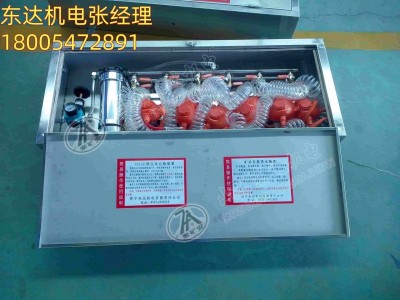 此装置在压风自救装置的基础上增加了进水管、净水过滤器、水型压力表、排水装置(多组)等。箱体、安装板、总进气管、总进水管采用不锈钢制造而成。一箱六组供水,六组供气(可根据要求设计组别)。
